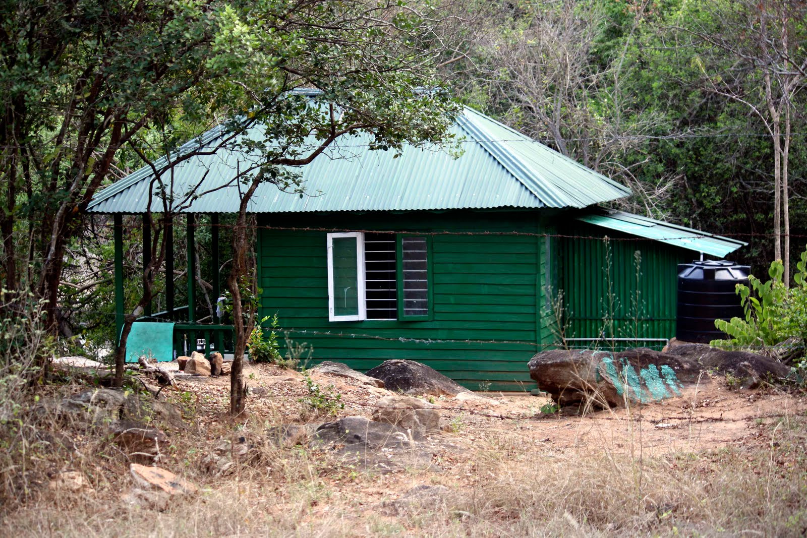 The log house is built with logs(of course) and thatched with asbestos sheets.The time was around 4:30pm and the heat was still on the higher side.Kannan informed us that the temperature will be cooler during night.