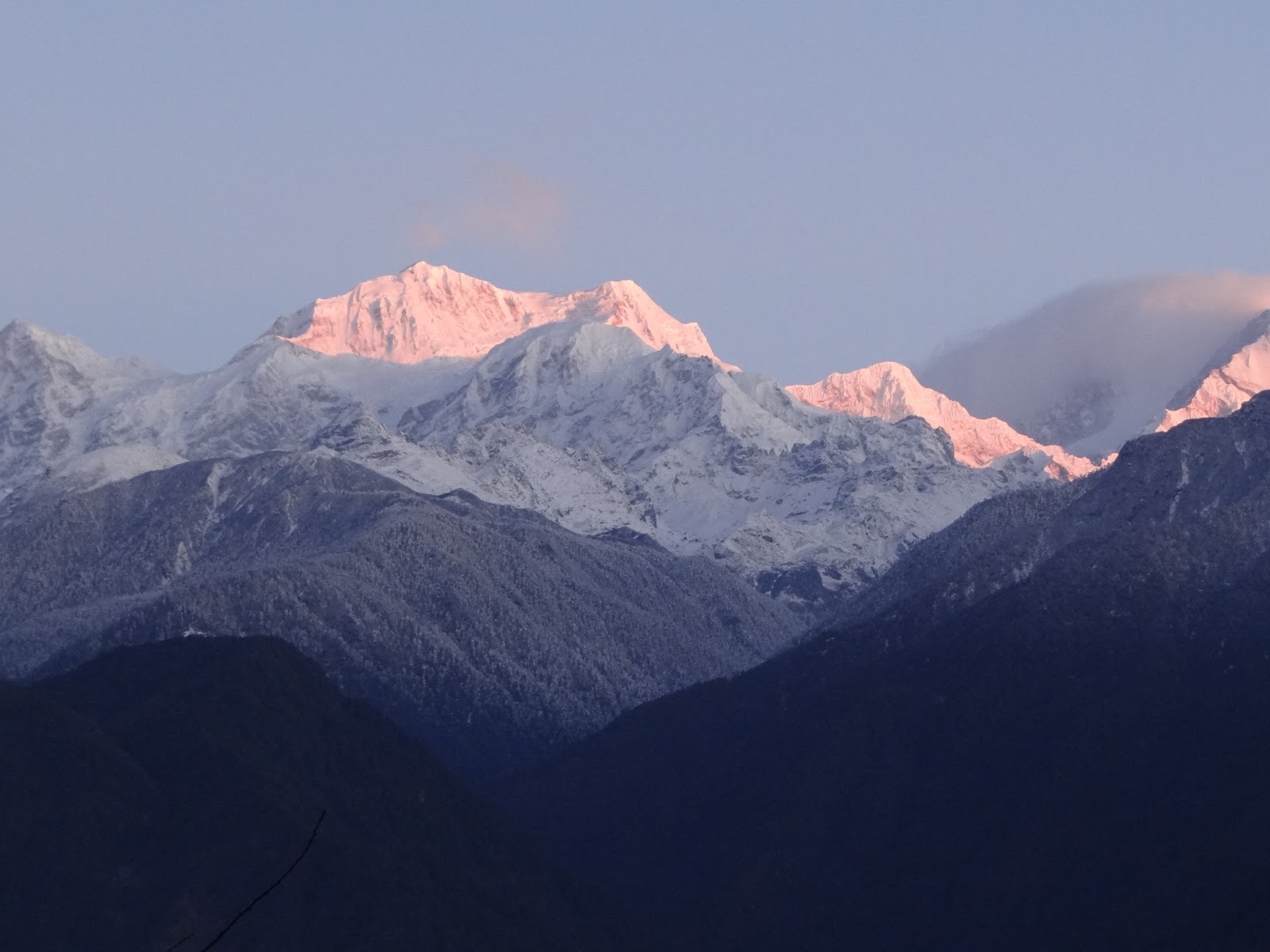 and the curvature of the earth, the sun touches here before lighting the lower Himalaya summits to the east. Residents of the area had long held this belief of first light to be true for thousands of years before the first man stood on the summit of Kanchenjunga(actually