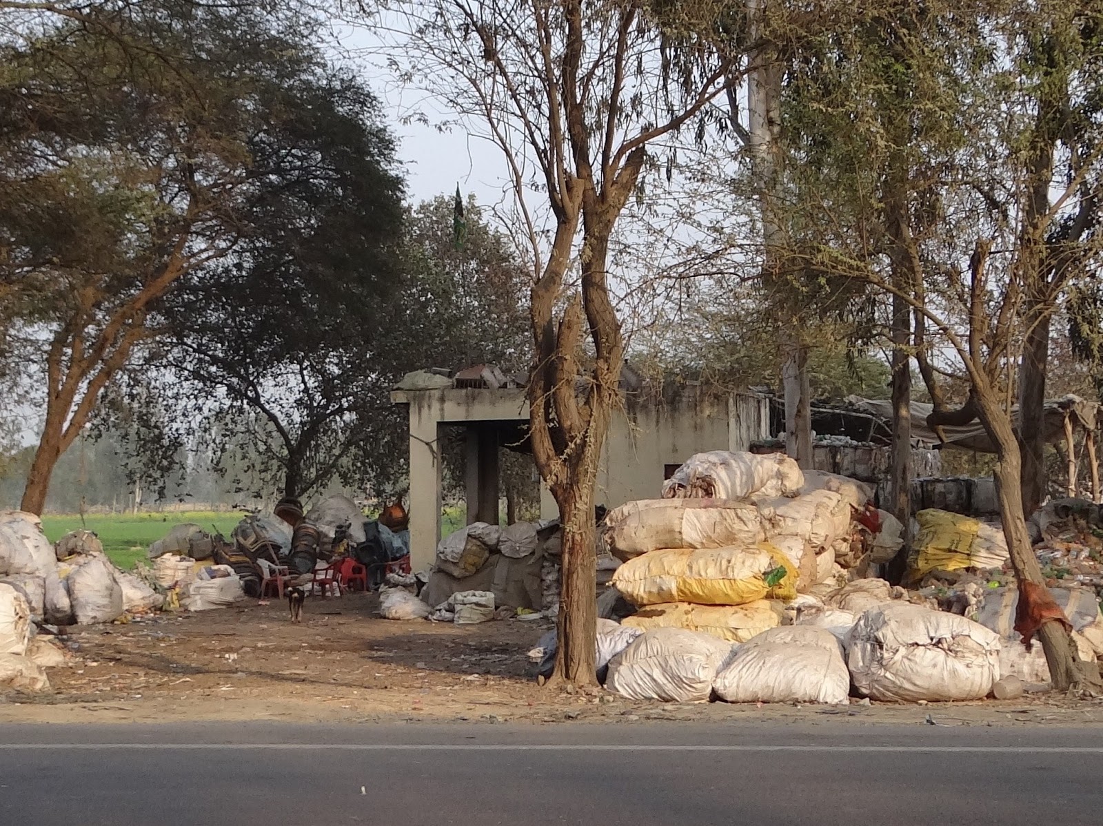 If we go by road to Corbett National Park, you have to pass a place called Kashipur. Here, for miles at a stretch, we see plastic gunny bags, just like the one our tiger is carrying. These are filled with more plastic and more bio degradable stuff. They