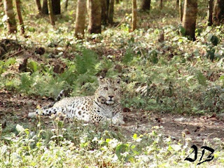 We were content to find the diverse variety of flora and fauna and my jungle experience was really great. I promised I shall return in the green soon. And most luckily mother nature rewarded us with the icing on the cake. From a 50 yards out we could spot a animal which is so popular to us, the most successful of  all killer cats. THE INDIAN LEOPARD. Resting and tanning its skin in the morning sun it rested on the ground.